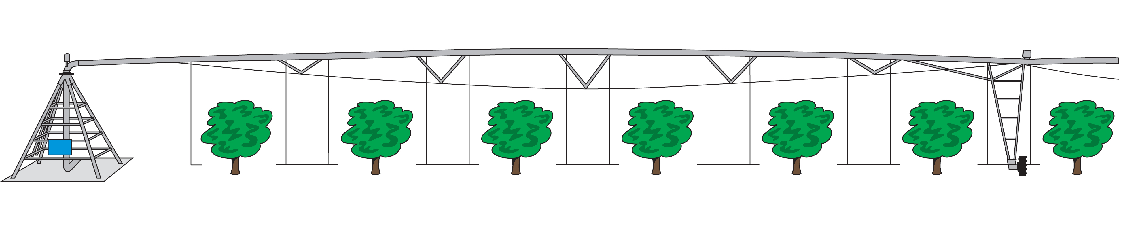The central pivot machine is of national production, built in the Mechanical Enterprise of Bayamo (EMBA) and responds to dimensions of the Valley Irrigation model 8120, as follows: