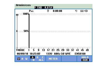 These measurements validate that the developed prototype generates a waveform with very low harmonic content, presenting good behavior in terms of spectral content and the absence of deformations.
