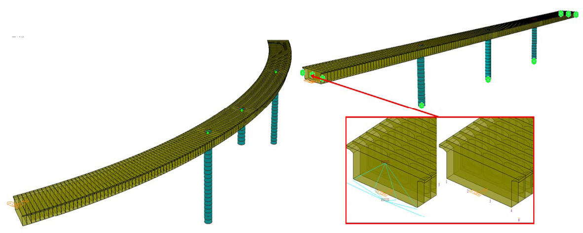 Fig 10. Bridge configuration 2 (plan curvature of 30.00°).
