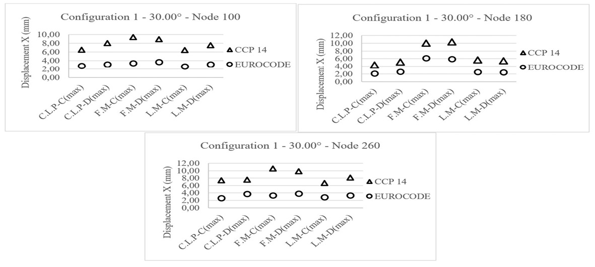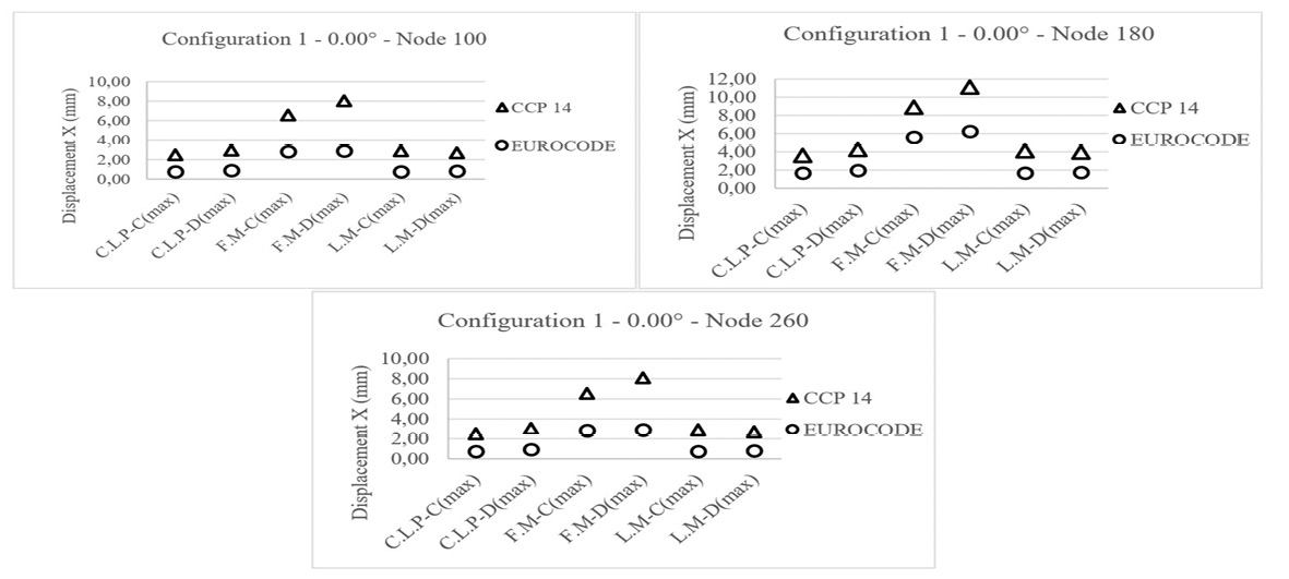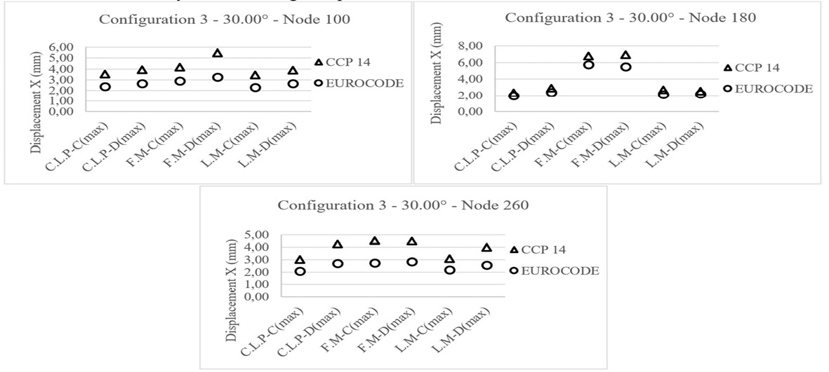 Conclusions: Lower displacement values and, therefore, better seismic performance are evident for the dimensions of the elastomeric bearings designed by the Eurocode.
