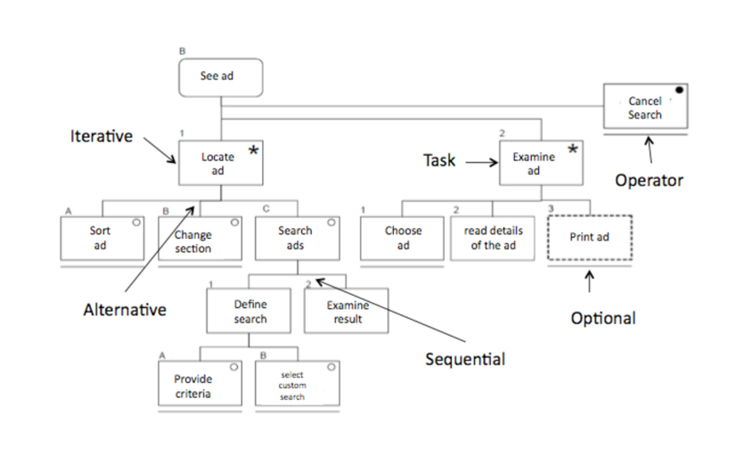 Task analysis in the context of HCI (Human Computer Interaction Area) aims to know who the user is and what activities they do in terms of the system. How this information is picked up through task analysis and represented on the notation [2]. That means, that notations allow the information to be formalized and analyzed and it is important to provide information about the system.