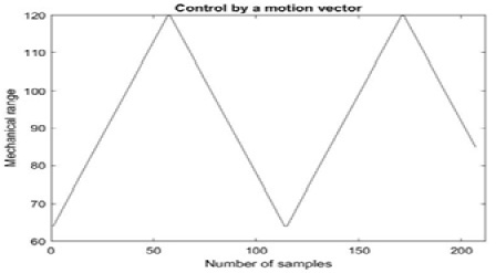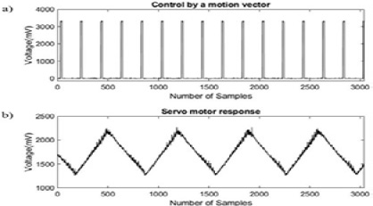 As shown in Figure 8, graph a) shows the motion vector sent to the servomotor over time and b) shows the response to the signal sent.