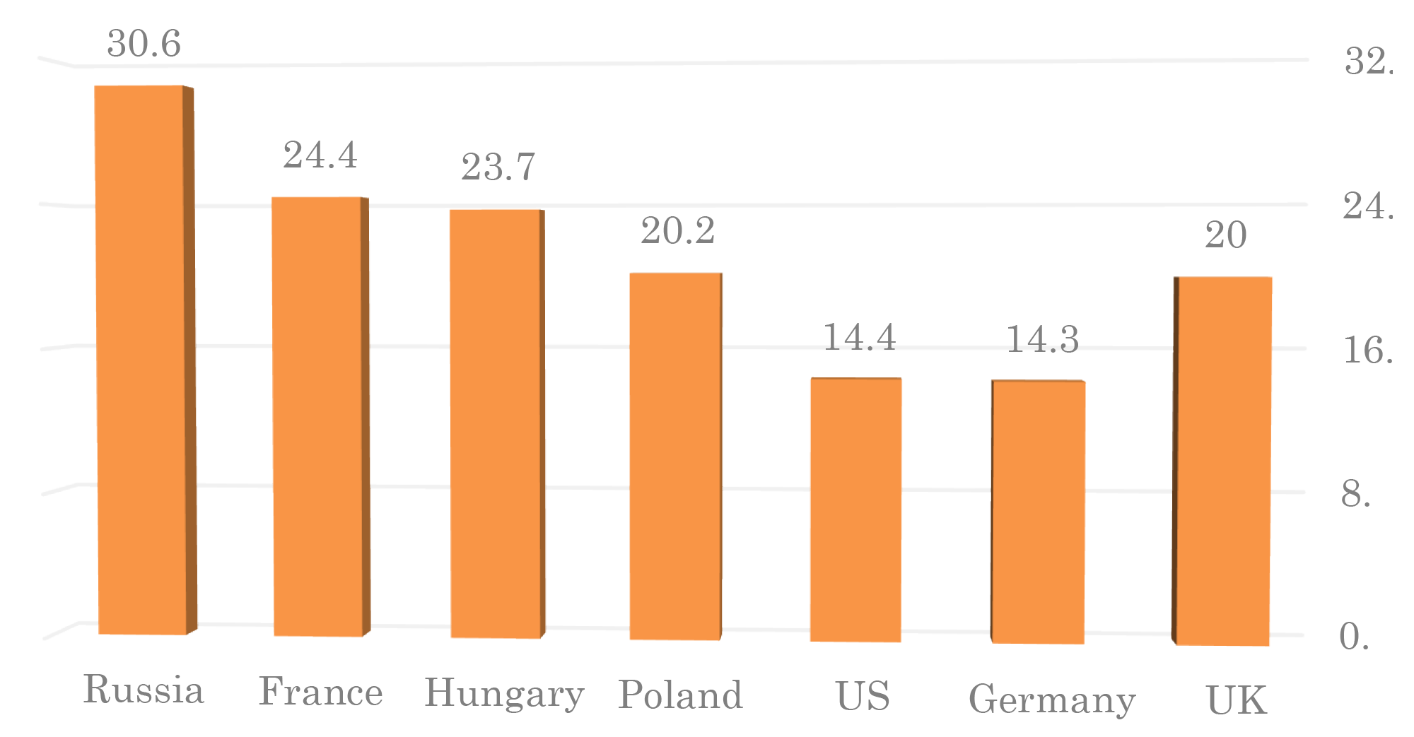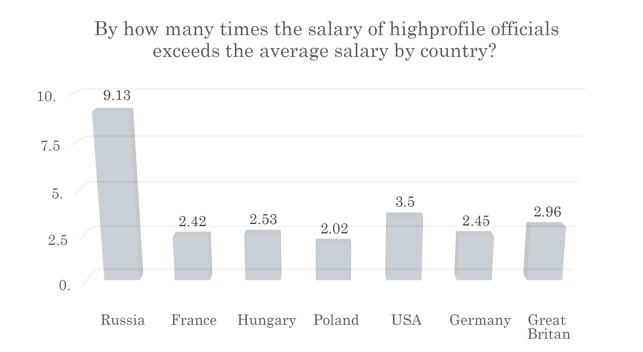 Figure 2. The ratio of salaries earned by civil servants and the average salary by country in the currencies of specified countries.