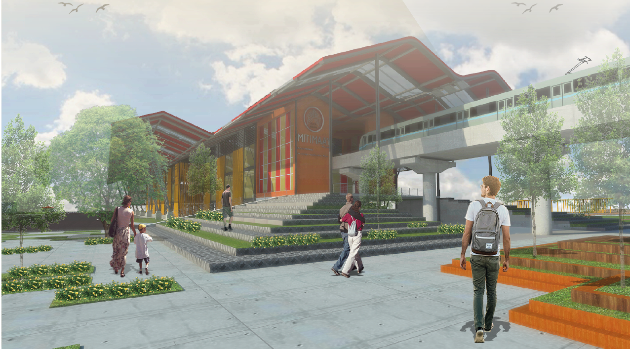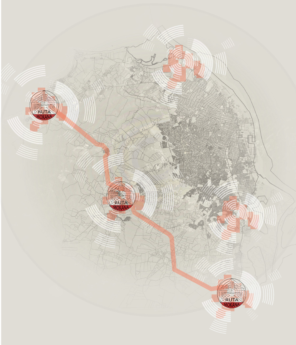 Red de nodos Mokaná: nodo temático dentro del cual la red de estaciones de transporte intermodales y multimodales tendrán como tema de conceptualización de su espacialidad, forma, detalles, materiales y colores la cultura Mokaná, tanto de sus espacios internos como del espacio público que lo complementa.
