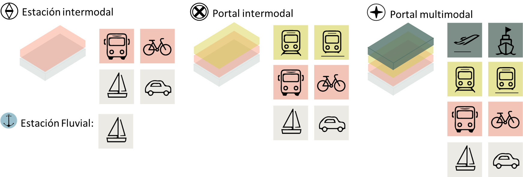 Figura 12. Pautas de distribución espacial para un portal multimodal de transporte.