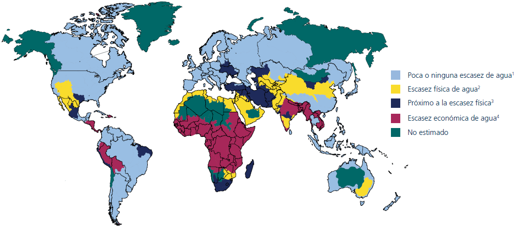 Figura 1. Mapa físico y económico de la escasez de agua a nivel mundial.
