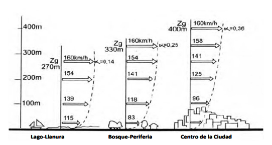 Figura 4. Disminución de la velocidad del viento en zonas urbanas.