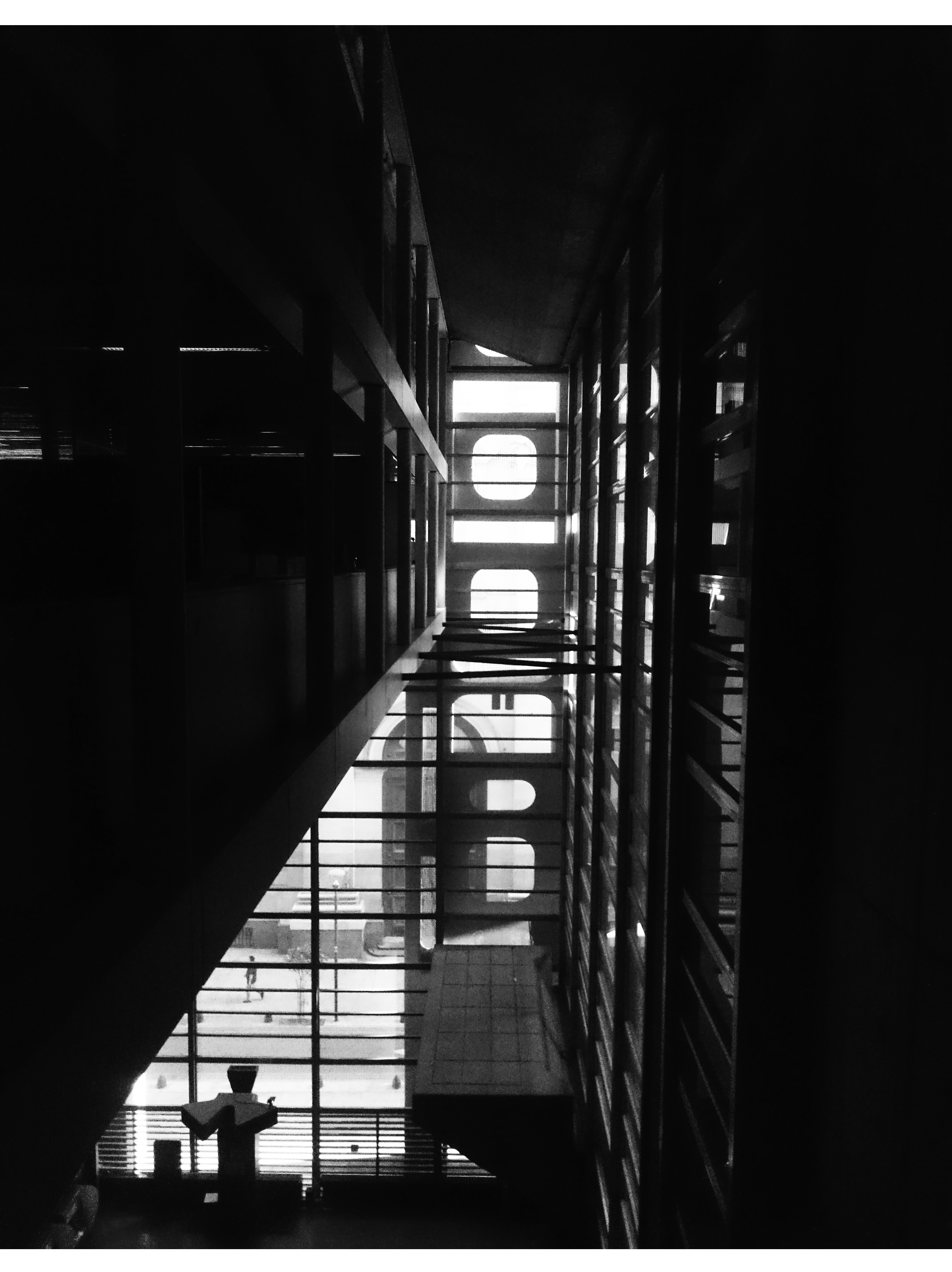 Al igual que en el arte, podemos encontrar puntos de contacto entre el cine y la arquitectura brutalista. La naturaleza monocromática de materialidad concreta, sombras largas, y contraste claro-oscuro de la paleta brutalista crean un ambiente en blanco y negro. La escala abrumadora de muchos de estos edificios genera una sensación de drama inminente con un final ambivalente o ambiguo. Lo que parecía inicialmente claro generalmente resulta no ser así una vez que entramos en sus espacios, lo que crea misterio, suspenso y algo de estrés. Y si a esto le agregamos una arquitectura de musculatura erótica, atmósfera espesa, y condiciones físicamente desafiantes captamos influencias (conscientes o inconscientes) del Film ‘Noir’ de las décadas del ´40 y ´50. El cine negro presenta una sociedad violenta, dentro de un ambiente de pesimismo fatalista, muy cercano al clima que describía el existencialismo francés de posguerra. En este contexto de suspenso y drama, no es sorprendente ver escenas cinematográficas del Film Noir caracterizadas por una iluminación tenebrosa en claroscuro, circunstancias nocturnas con humedad en el ambiente, extremo uso de sombras para exaltar la psicología de los personajes. Algunos de estos efectos son especialmente impactantes en blanco y negro, tal como ocurría con la fotografía.2
