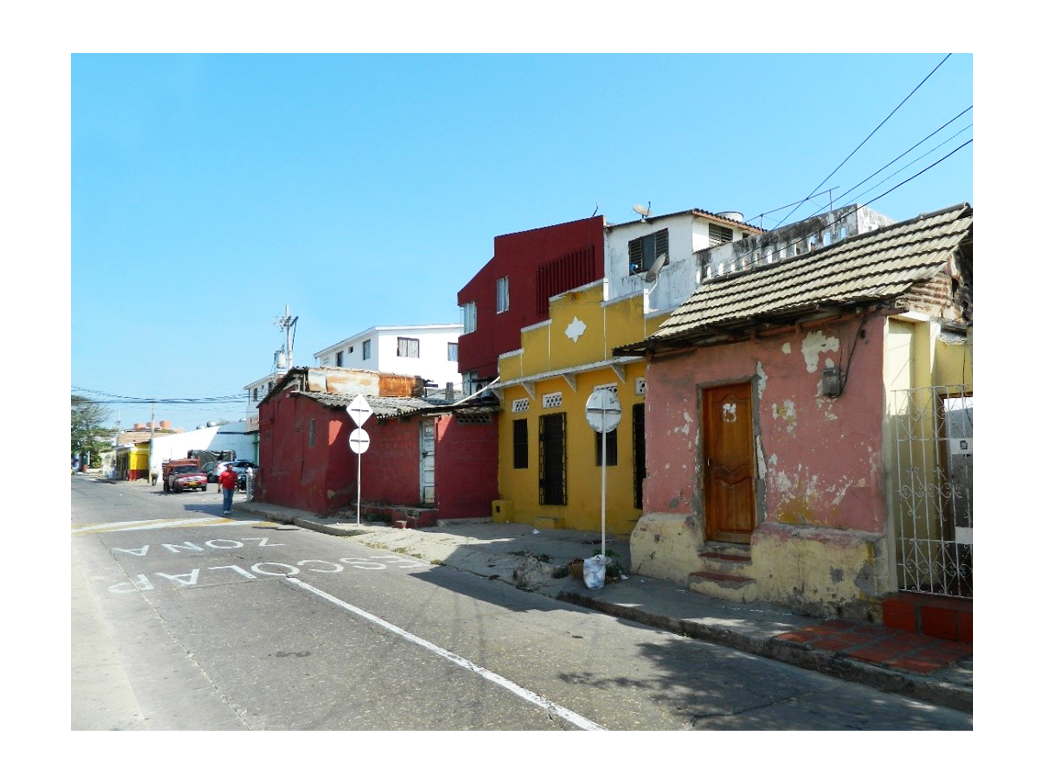 Figura 6. Viviendas localizadas en la carrera 50 antes de ser intervenida: Los colores pasteles hacían parte de las tonalidades usadas en las fachadas de las viviendas.