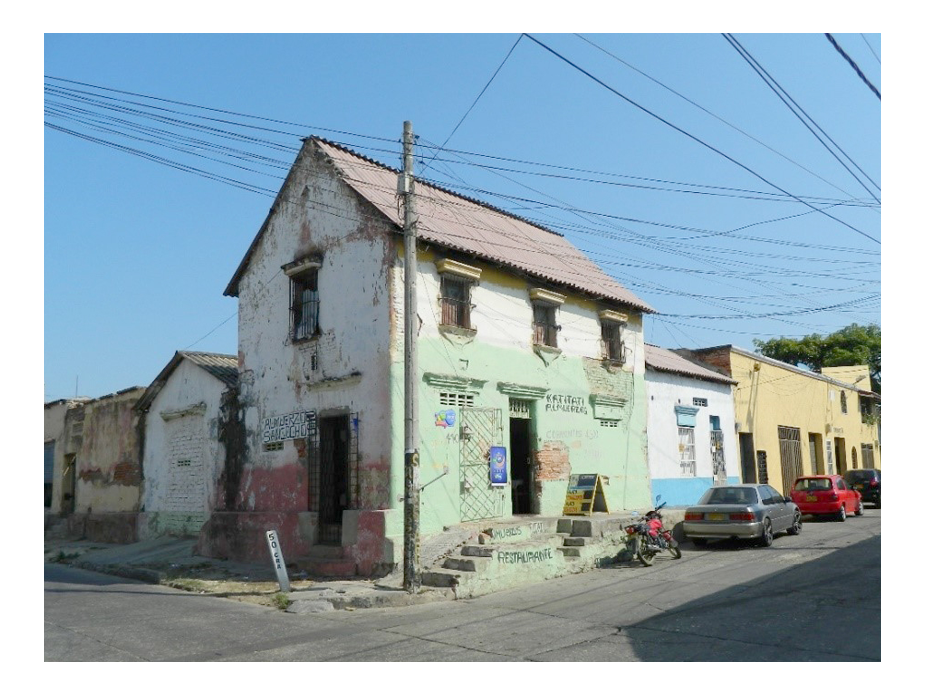Figura 2. Viviendas localizadas en la carrera 50 antes de ser intervenida: Viviendas con antiguas tejas de cemento, puertas y ventanas de madera.