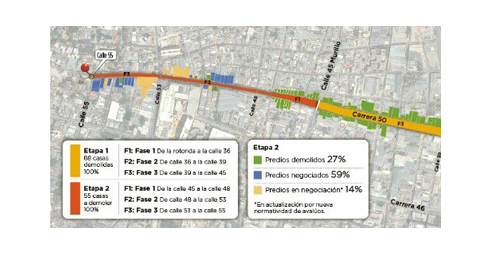 Figura 13. Comienzo de la primera etapa del proyecto del Par Vial de la carrera 50.