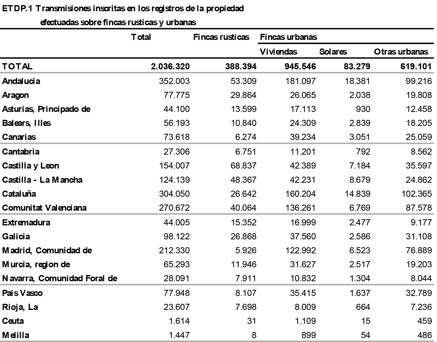 INE. (2020). Estadística de Transmisiones de Derechos de la Propiedad. ETDP. [Online]. Disponible en https://www.ine.es/uc/FhjGmYmF