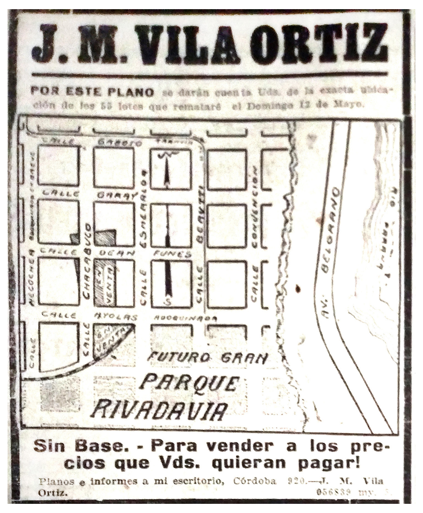 Figura 1. <Izquierda: Proyecto definitivo para Av. Belgrano. Derecha>: Aviso de remate en las cercanías del proyectado Parque Rivadavia.