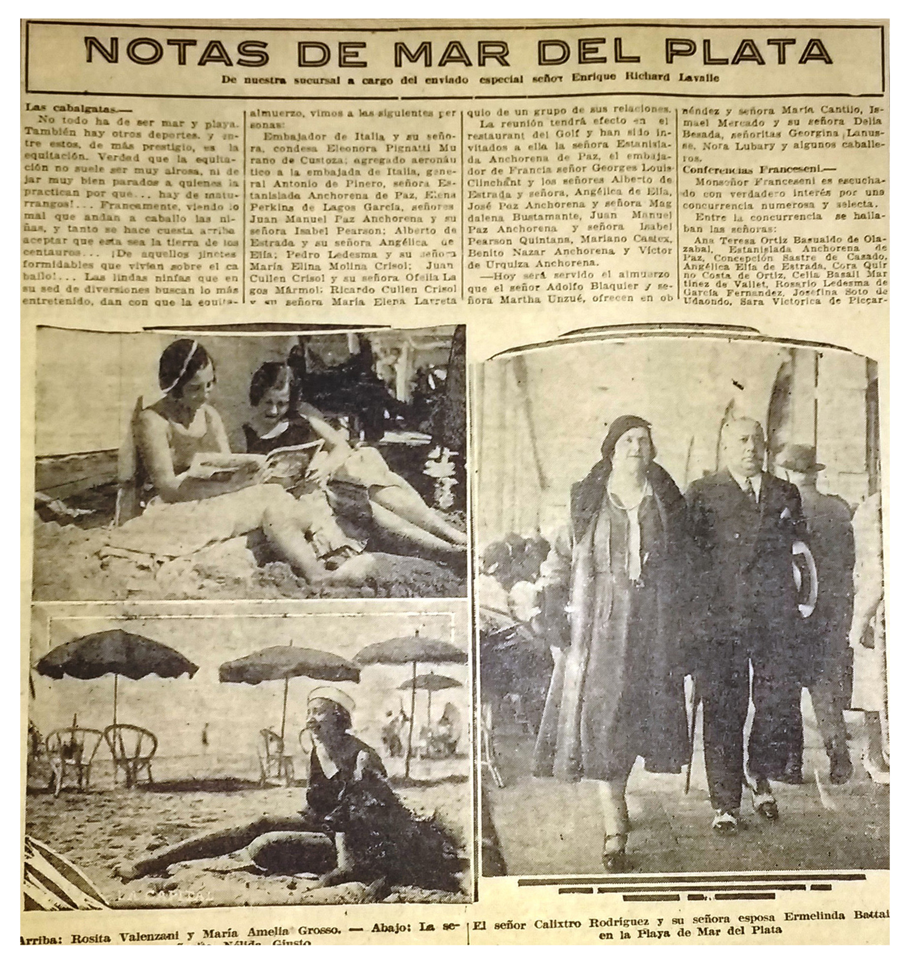 La Capital dedicará numerosas notas a estas actividades y, al mismo tiempo, como lo había hecho desde fines del siglo XIX, en los períodos estivales da cuenta de los hábitos vacacionales de las familias rosarinas en el costa marplatense que suplanta el tradicional paseo a la sierras de Córdoba (Figura 2). Las imágenes publicadas estimularán figuraciones sociales que trascienden el anhelo de “ver” el río por el de “estar dentro” del río, especialmente en los sectores sociales no incluidos en ninguna de las alternativas existentes y que en ocasiones optaban por los baños en el Paraná, con los consiguientes accidentes y muertes.