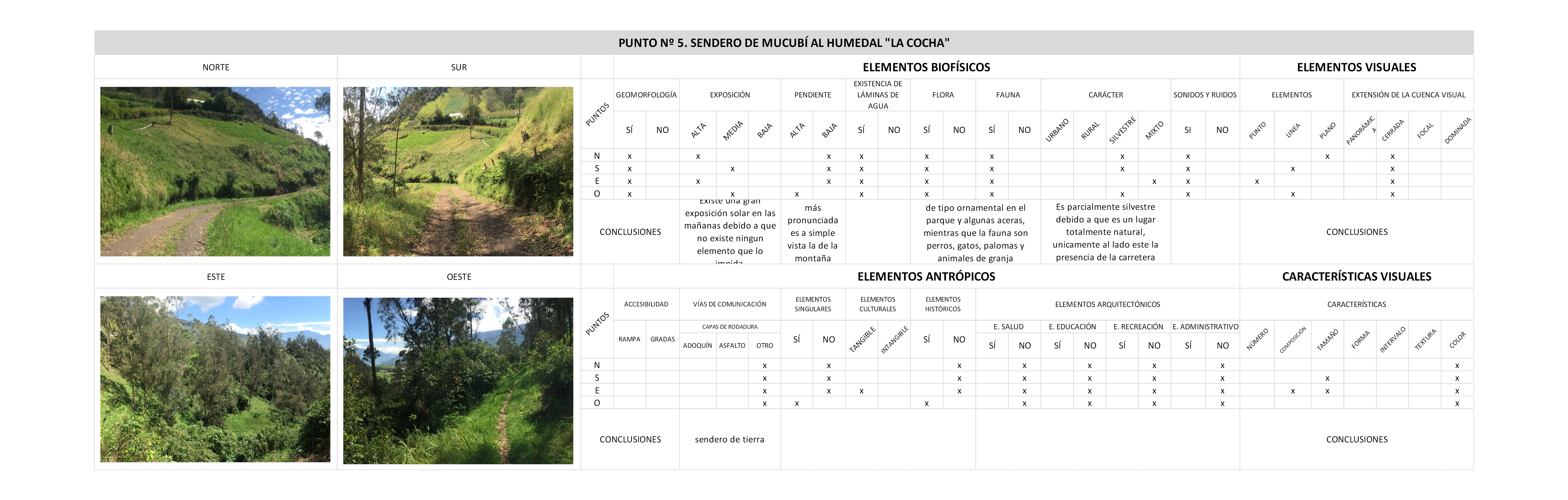 En todo caso, en la fase de identificación y caracterización del paisaje, al observar las fotografías se perciben los diferentes sectores que configuran tres escenarios: la montaña, el humedal y lo antrópico.
