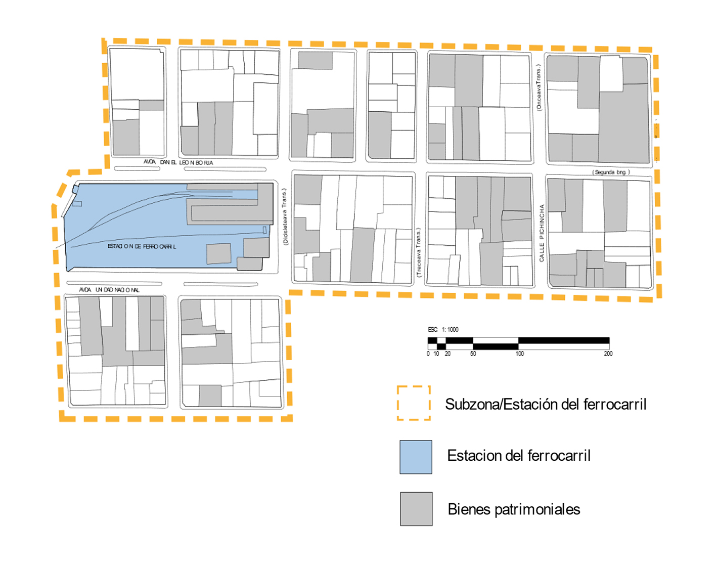 Por consiguiente, y debido a la presencia de dos grandes hitos en el área de primer orden como son: la estación del ferrocarril, que permitió el boom económico de la ciudad de Riobamba, y, por otra parte, el parque Maldonado como eje central del crecimiento y consolidación del centro histórico, es pertinente dividir esta unidad del paisaje en dos subunidades, con el fin de entender las dinámicas urbanas que se desarrollan alrededor de estos hitos urbanos (Figura 2; Figura 3).