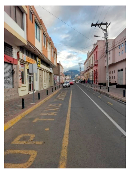El estado vial del área de primer orden es bueno, porque aún se conservan las vías de piedra desde la fundación de la ciudad (Figura 5), en su gran mayoría las vías longitudinales pasan por toda la ciudad, también se evidencian vías adoquinas en las avenidas en la Unidad Nacional y José veloz (Figura 6), las cuales cuentan con cableado eléctrico soterrado. Las vías asfaltadas se encuentran en los límites del área de primer orden evidenciando así la relación con el área de influencia (Figura 7).