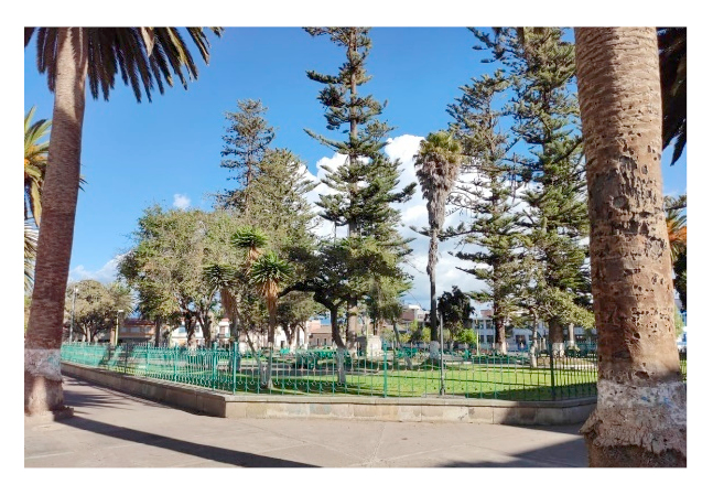 El área de primer orden abarca casi el 50% del espacio público total de la ciudad de Riobamba, entre ellos se encuentran 3 parques y 2 plazas de alto valor histórico y cultural. El parque Sucre (Figura 8) se ubica frente al colegio Pedro Vicente Maldonado, tiene forma de rosa náutica, con un eje central que es una pileta y en ella se encuentra la estatua del dios Neptuno y cuatro pequeños tritones. El parque Maldonado (Figura 9) está ubicado frente a la catedral de San Pedro de Riobamba, el parque funcionó como eje central para la delimitación de las calles y manzanas de la ciudad en 1799, contiene elementos representativos como: el monumento a Pedro Vicente Maldonado y cuatro lámparas de hierro con bebederos, alrededor de éstos se encuentran gran cantidad de edificaciones patrimoniales. El parque La Libertad (Figura 10) es el más grande del centro histórico, cuenta con vegetación de gran tamaño, está ubicado al frente de la Basílica del Sagrado Corazón de Jesús y tiene un monumento al Padre Juan de Velasco.