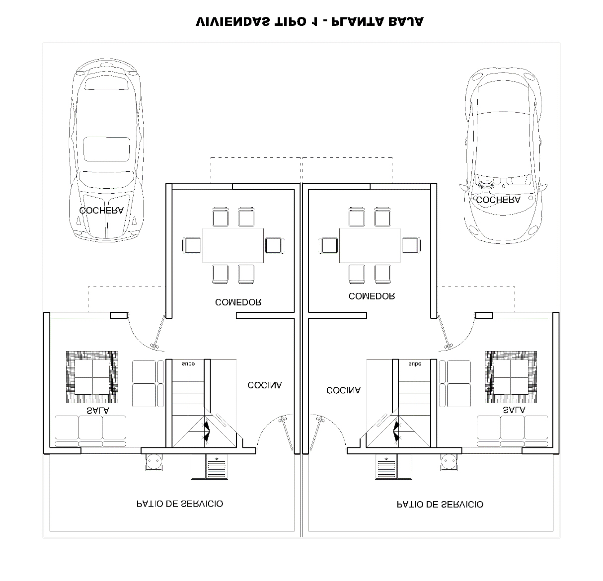 En lo general, dentro del fraccionamiento, este módulo de vivienda se encontrará agrupado por par, dispuestas de forma opuesta en su colindancia en común a modo de eje simétrico.
