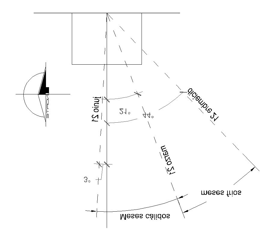 En consecuencia, generar la forma óptima de la vivienda es aquella que tiene menos superficie en las fachadas expuestas a la radiación solar, por lo que el siguiente paso es generar esquemas de control de la forma para mitigar la transferencia de calor, por lo que se desarrollan diferentes tipos de esquemas de control horizontal y vertical, primeramente, desarrollando el esquema horizontal en donde se verifican las inclinaciones del sol en el eje Norte-Sur a lo largo del año (12:00 pm) (Figura 23). Como se determinó en análisis anteriores, los meses más cálidos comprenden de marzo a octubre y los meses fríos de noviembre a febrero. A partir del mes de marzo y hasta octubre se recomienda la utilización de protecciones solares. En este esquema se muestra como el sol incide con un ángulo de 21° sobre la vertical, y para ello es recomendable colocar un alero de mínimo 0.46 m para evitar que el sol penetre a la vivienda.