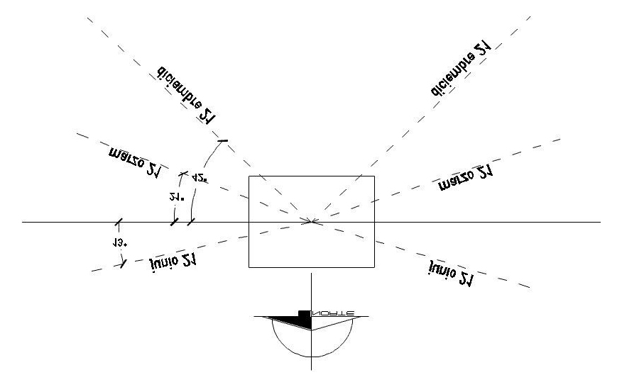 Posteriormente, para generar los esquemas de protección vertical se deben conocer los ángulos de incidencia del sol sobre las fachadas afectadas, aplicando los ángulos adecuados se generó las protecciones verticales que aumentan la sombra dentro de la vivienda (Figura 24), teniendo en cuenta que el sol incide por diferentes ángulos de fachadas en la vivienda, analizamos solo los meses que más afecta en asoleamiento, estos son; el mes de marzo y junio, ya que en diciembre se necesita la ganancia de calor, por lo que el mes de marzo, como ya se mencionó es el mes en que comienzan las temperaturas cálidas y por lo tanto los requerimientos de protección solar son elementos a 45° los cuales ayudan a proteger el interior de la vivienda y al no tener ganancias de calor innecesarias, en cuanto a junio puede tener elementos de 13°.