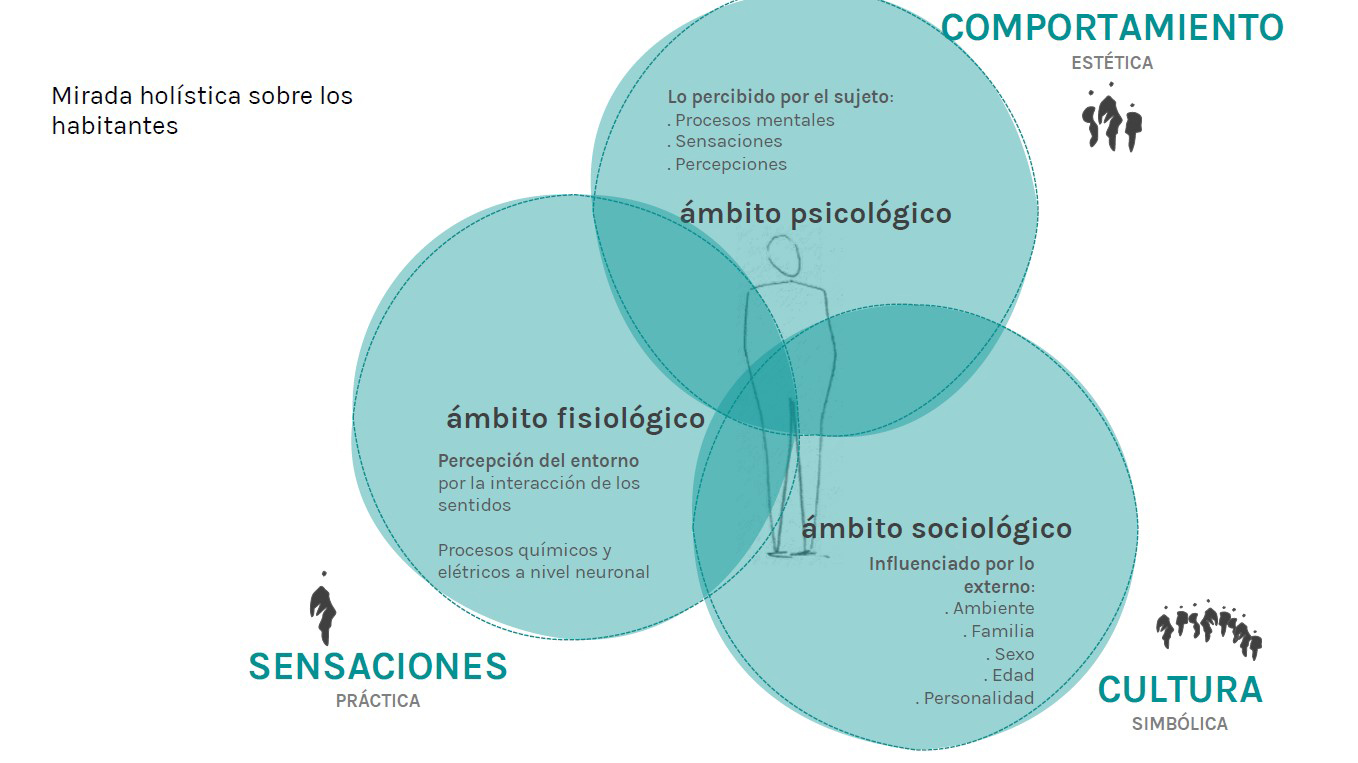 Una mirada holística desde los factores humanos en la arquitectura se logra a partir de la interrelación de las sensaciones, el comportamiento y la cultura (Figura 3).