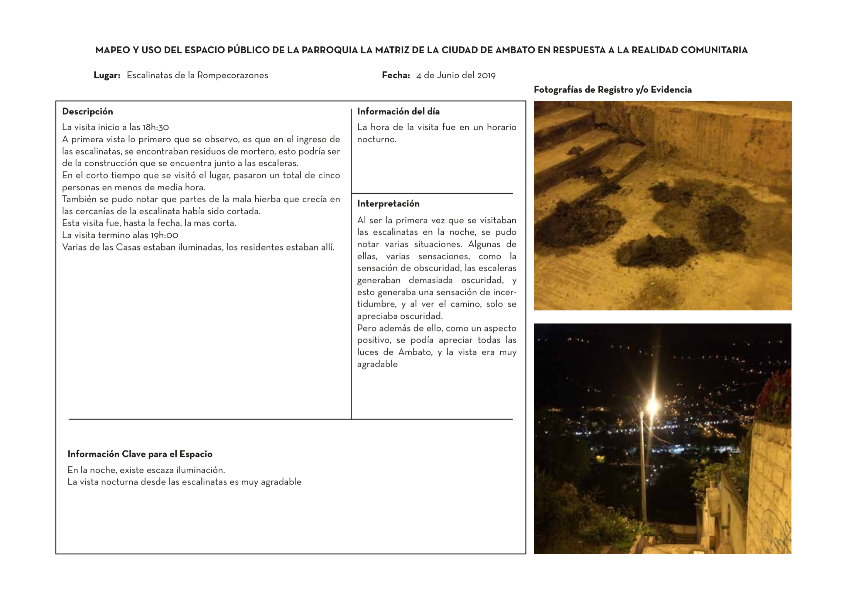Esta técnica permitió al equipo de investigación introducirse activamente en la vida cotidiana de la parroquia la Matriz, y entender los diversos imaginarios que se han construido en torno al uso del espacio público como se observa en la Figura 3. El tiempo de aplicación de la observación participante fue de 4 semanas.