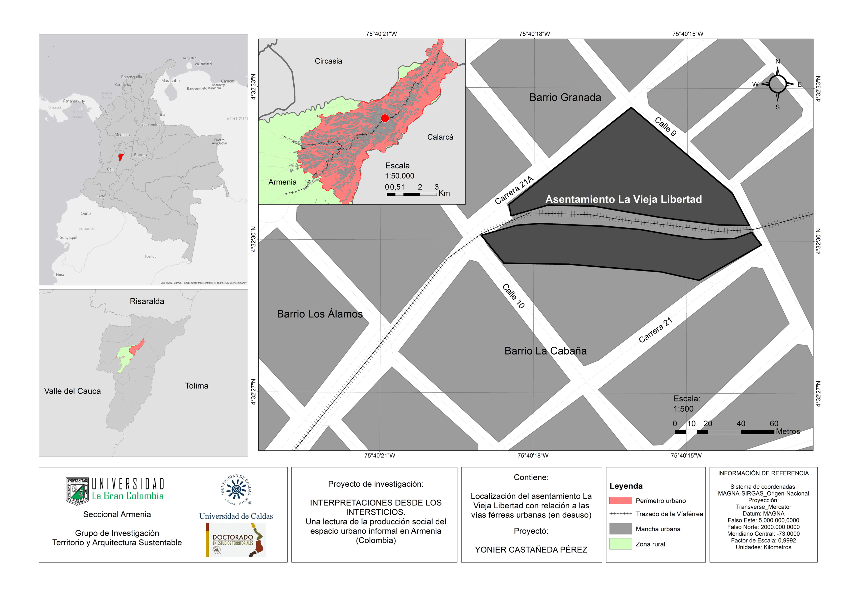 Este proceso de investigación se propone prever, conforme a las dinámicas presentes, la viabilidad urbanística, jurídica y económica de la regularización del suelo del asentamiento humano informal La Vieja Libertad de Armenia. Ubicado sobre un corredor férreo en desuso desde hace varias décadas, compuesto por aproximadamente 450 personas en 160 viviendas, asentadas sobre 6 789.07 m2 de suelo urbano; que, además, cuenta con Junta de Acción Comunal y el reconocimiento formal por parte de la administración municipal.