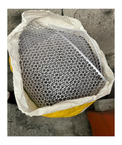 La empresa Indubotón SAS es una de las industrias que más utiliza la RPI en diferentes procesos de manufactura para la fabricación de botones para prendas. A lo largo de su fabricación se generan diferentes tipos de residuos que pueden variar tanto en su forma como en su composición, pues en algunos casos puede tratarse de matrices de RPI con fibras u otros tipos de materiales. Sin embargo, en cuanto a la forma del residuo suelen encontrarse como virutas, resultantes de un proceso por arranque de material a barras cilíndricas, o como láminas con agujeros circulares resultantes de un troquel de corte. De la última forma, el diámetro de sus perforaciones puede variar en cada lámina dependiendo de la referencia de botón que se requiera. Por ello, los residuos pueden tener tantos acabados como referencias de botón soliciten, y sus cantidades pueden variar de acuerdo con las solicitudes de los clientes, lo que dificulta aún más los procesos de reciclaje o reutilización, aumentando la huella de carbono de esta industria.