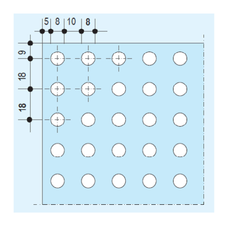 Figura 3. Dimensiones, patrón y porcentaje de perforación del residuo.